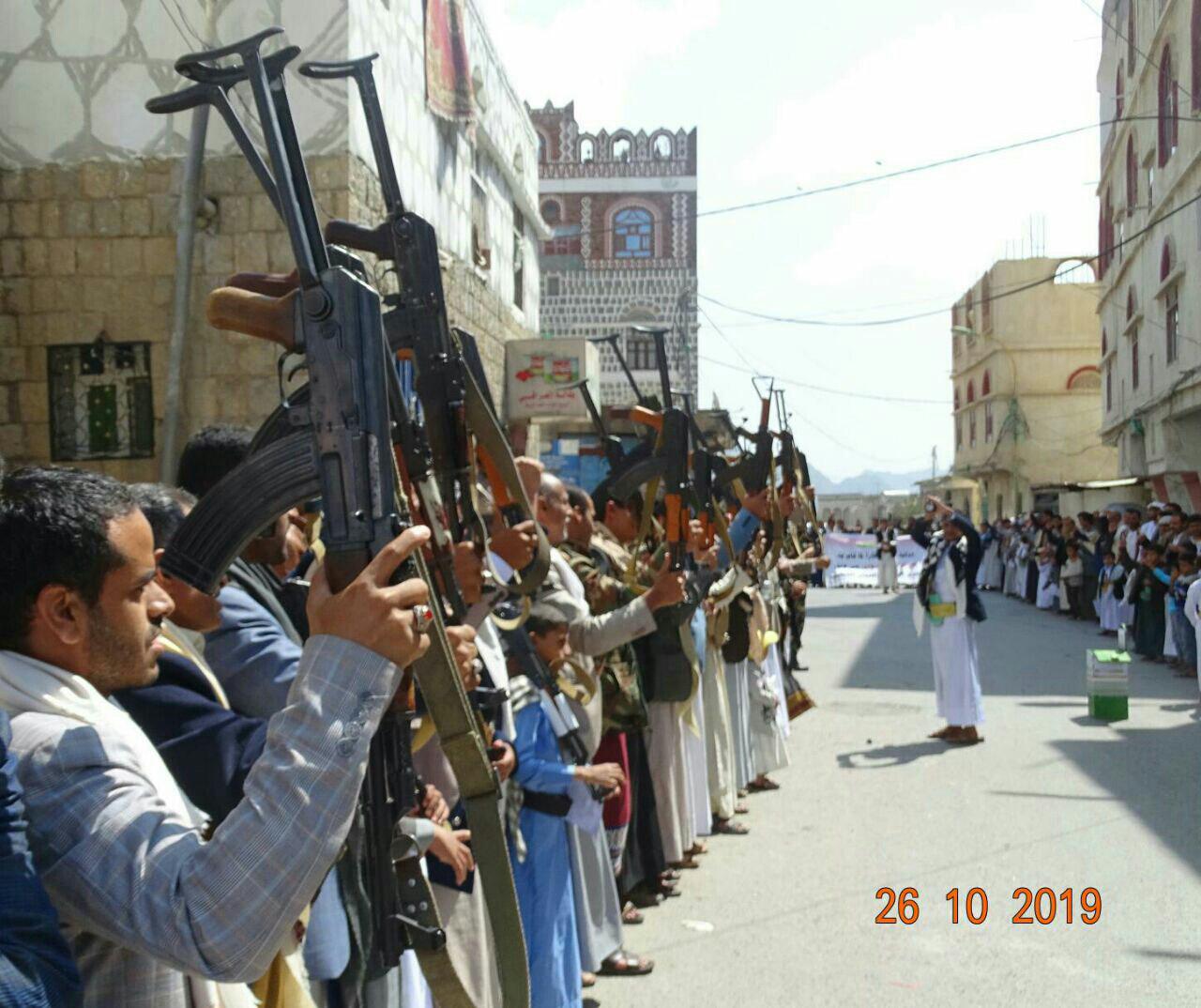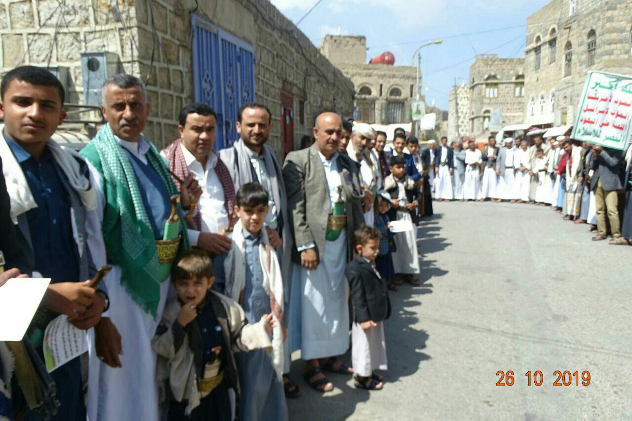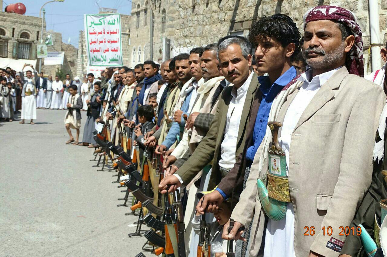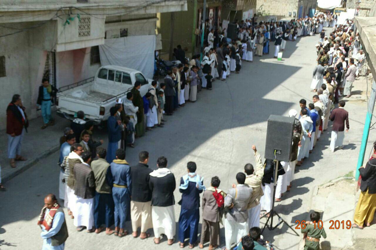 نظم أبناء ومشائخ ووجهاء مدينة حجة مربع الظهرين اليوم عقب صلاة الجمعة وقفة إحتجاجية مسلحة تنديدا واستنكارا بالجريمة البشعة التي أقدم عليها المتورطين في الخيانة والإرتزاق بتعذيب وقتل 3 أسرى من أبناء الجيش واللجان الشعبية داخل معتقلات الإحتلال الأمريكي السعودي الإماراتي في محافظة مأرب وبالجرائم الوحشية التي يرتكبها مرتزقة طارق عفاش من قتل واغتصاب للنساء والأطفال في مدينة التحيتا بالمحافظة الحديدة ..