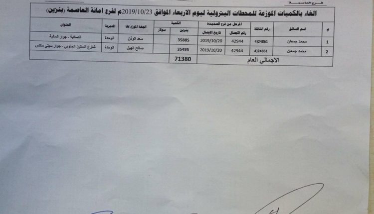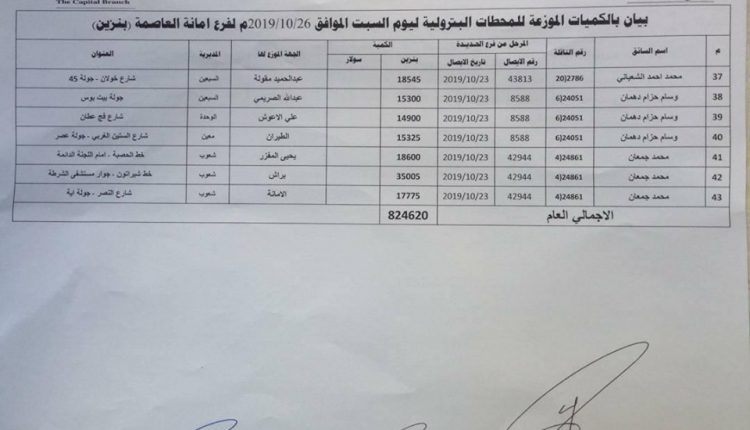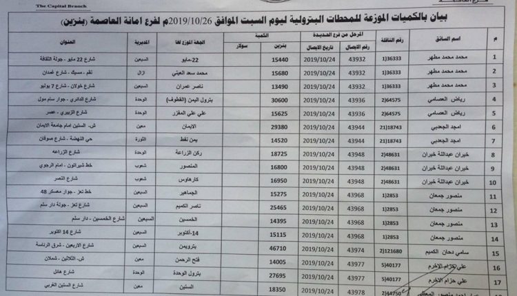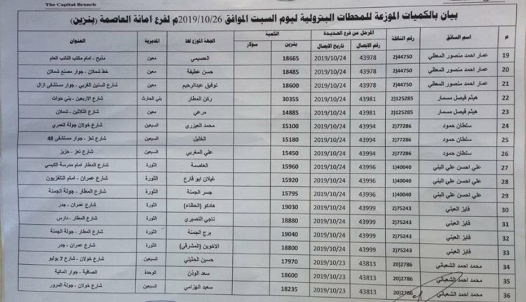 أصدرت شركة النفط اليمنية فرع أمانة العاصمة كشوفات بأسماء المحطات العاملة بالبنزين، في أمانة العاصمة صنعاء بإشراف مباشر منها.