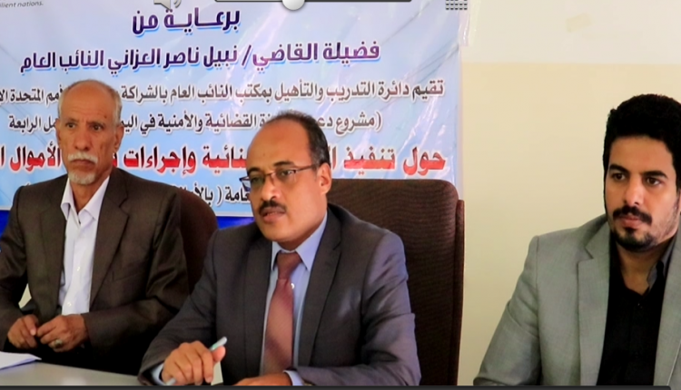 وكان 22 قاضياً يمثلون أعضاء النيابة في أمانة العاصمة ومحافظات الحديدة ،إب ، تعز، ذمار، تلقوا خلال الورشة التي نظمتها على مدى ثلاثة أيام دائرة التدريب والتأهيل بمكتب النائب العام بالشراكة من برامج الأمم المتحدة ” مشروع دعم الاجهزة القضائية والأمنية”، محاضرات متخصصة حول طبيعة الإجراءات القانونية السلمية الواجب اتباعها عند تنفيذ الأحكام الجنائية المتعلقة بتحصيل الأموال العامة .