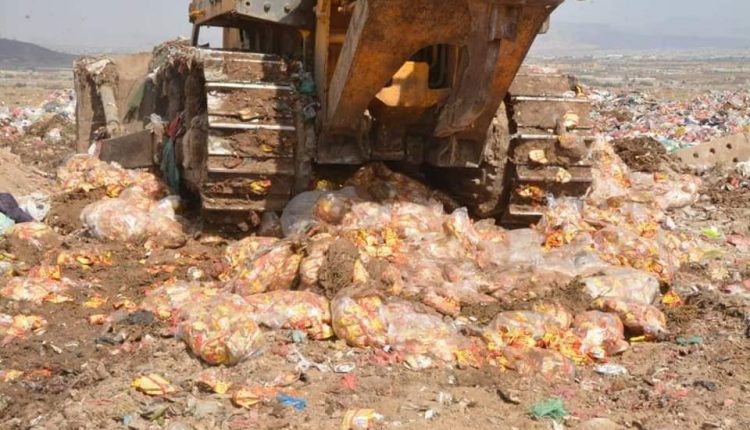 تم، يوم أمس الأربعاء، إتلاف كميات كبيرة من منتفخات الذرة “بفك” ماركة حار نار، بصنعاء.