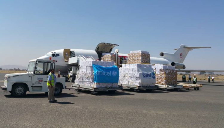 وصلت إلى مطار صنعاء الدولي اليوم، طائرة شحن تابعة لمنظمة الأمم المتحدة للأمومة والطفولة اليونيسيف، تحمل لقاحات خاصة بشلل الأطفال.