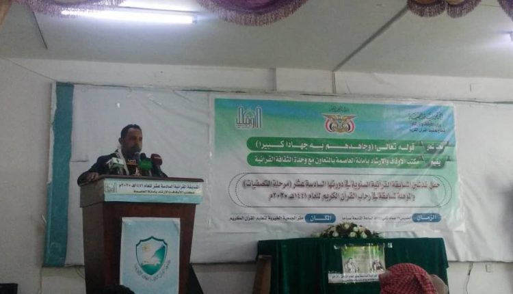 دشن مكتب الأوقاف والإرشاد بأمانة العاصمة بالتعاون مع وحدة الثقافة القرآنية اليوم بجامعة القرآن الكريم المسابقة القرآنية السنوية في دورتها الـ16، مرحلة التصفيات المؤهلة للمسابقة على مستوى الجمهورية للعام 1441 هجرية.