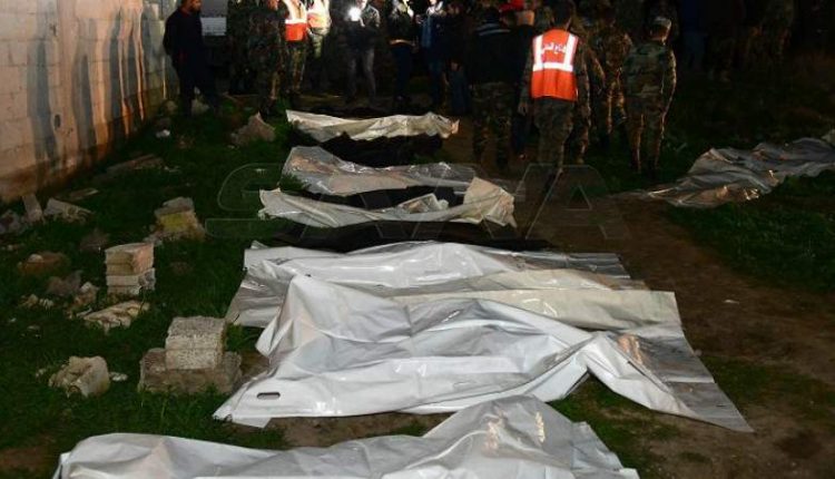 ولفت الدكتور أيمن خلو طبيب شرعي بمشفى تشرين العسكري إلى أن معظم الرفاة التي تم انتشالها كانت مقيدة وتم التعرف على اثنتين منها وإن الكشف الأولي بين أنه تم إعدام أغلبتهم بطلقات نارية في الرأس والبعض أعدم بالكبل.