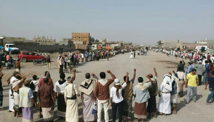 مسيرة ووقفة احتجاجية بمديرية باجل في الحديدة للتنديد بجرائم العدوان