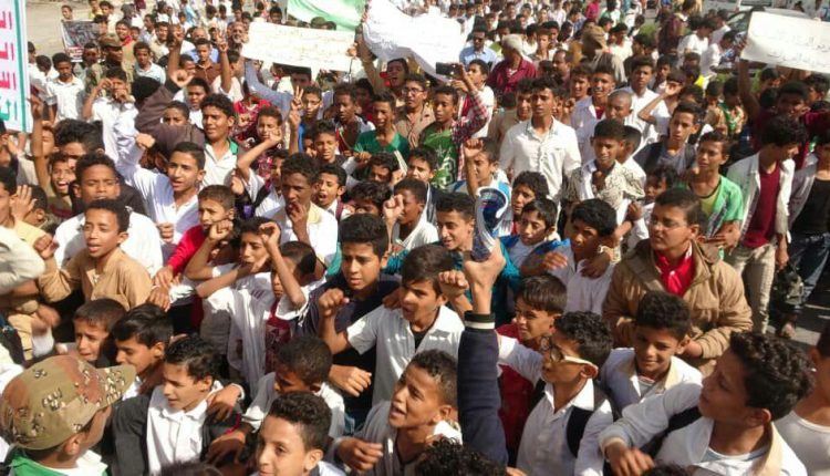 نظم طلاب مدارس مديريات ” الحالي والحوك والميناء ” بمحافظة الحديدة صباح اليوم الإثنين وقفة ومسيرة احتجاجية للتنديد بالجريمة البشعة التي أرتكبها العدوان بحق المدنيين الأبرياء بمديرية المصلوب بمحافظة الجوف ورفضا لصفقة ترامب الإجرامية ومباركة للعمليتين النوعيتين ” البنيان المرصوص وأحبط أعمالهم ” واستمرار جرائم وخروقات العدوان .