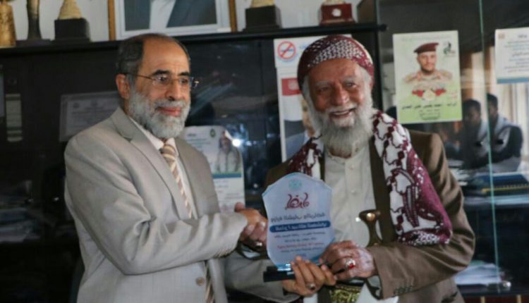 كرم وزير الشباب والرياضة حسن زيد وعدد من قيادات الوزارة صباح اليوم الأربعاء رجل الأعمال عبدالله أحمد المغشي- مالك مدينة ألعاب حديقة السبعين بصنعاء بدرع اليوم العالمي للطفل.