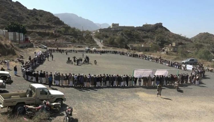 وقفة لأبناء المخادر بإب رفضاً لصفقة ترمب وإشادة بعمليتي “فأحبط أعمالهم والبنيان المرصوص”