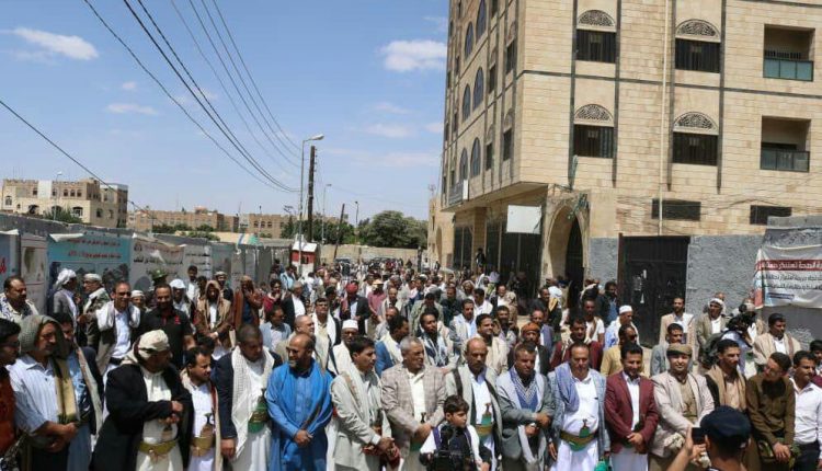 نظم موظفو شركة النفط اليمنية ونقاباتها وهيئاتها وجمع من المواطنين اليوم عقب صلاة الجمعة الـ 48 وقفة احتجاجية أمام مكتب الأمم المتحدة بصنعاء بعنوان “في ظل الأمم المتحدة ضاعت المبادئ الإنسانية”.