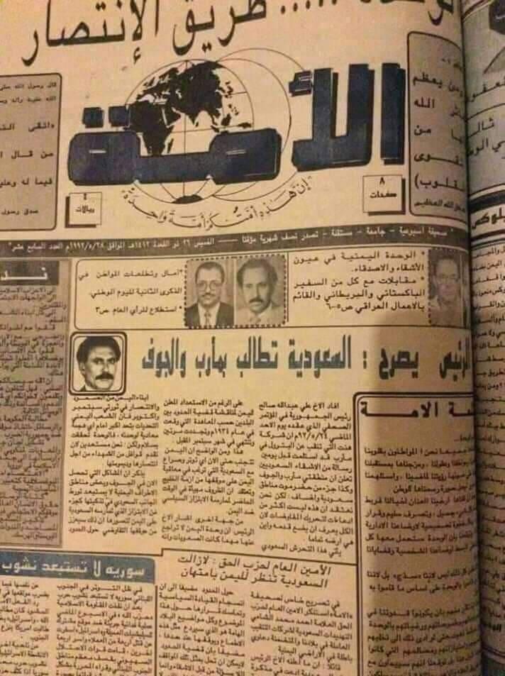 ويشير التصريح الذي يعود إلى شهر مايو 1992 ونشرته صحيفة الأمة في عددها السابع عشر، أن السعودية بعثت برسالة إلى شركة هنت التي كانت تنقب حينها عن النفط في مأرب، أن مأرب والجوف، وأجزاء من حضرموت مناطق سعودية.