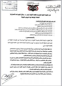 اللجنة العليا لمكافحة الأوبئة تقر إجراءات جديدة .. وثيقة