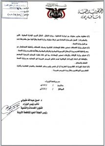 كما أقرت اللجنة في اجتماعها بحضور وزراء الصحة الدكتور طه المتوكل والنقل زكريا الشامي والداخلية اللواء عبدالكريم الحوثي والأوقاف نجيب العجي والصناعة عبد الوهاب الدرة والإدارة المحلية علي القيسي والتعليم الفني غازي أحمد علي محسن والتعليم العالي حسين حازب ورئيس جهاز الأمن والمخابرات اللواء الركن عبدالحكيم الخيواني، تشديد الإجراءات على المنافذ غير الرسمية على أن تتولى وزارت الإدارة المحلية والصحة والداخلية وجهاز الأمن والمخابرات تنفيذ هذا القرار.
