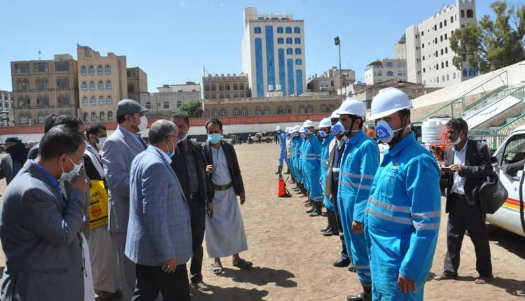 دشن أمين العاصمة حمود عُباد، اليوم حملة التوعية ورش المعقمات للوقاية من فيروس كورونا بالتعاون والتنسيق مع وزارة الصحة العامة والسكان والهيئة العامة لحماية البيئة وعدد من الجهات المعنية.