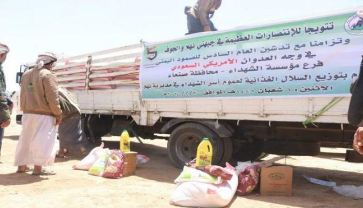 وفي التدشين أكد مسؤول فرع مؤسسة الشهداء بمحافظة صنعاء صالح حمزة أن المؤسسة قدمت سلة غذائية لأسر الشهداء تتويجًا للانتصارات في نهم والجوف، وتدشينًا للعام السادس لمواجهة العدوان.