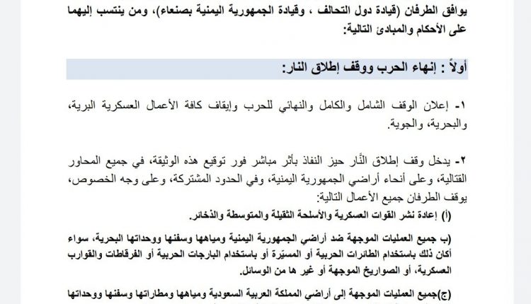 بالنص .. بنود روية الحل الشامل لوقف العدوان على اليمن