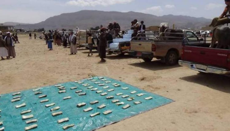 قبائل ريدة بعمران تجدد النفير العام وترفد الجبهات بقافلة غذائية ومالية
