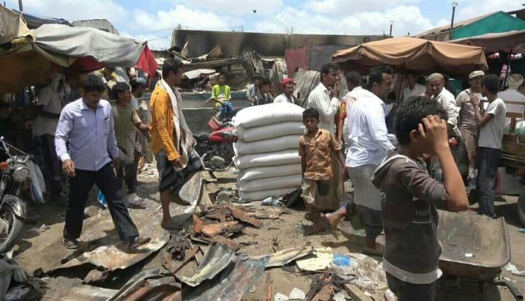 تفقد محافظ الحديدة محمد عياش قحيم اليوم، السوق الذي تعرض للحريق بمدينة زبيد يوم الأربعاء.