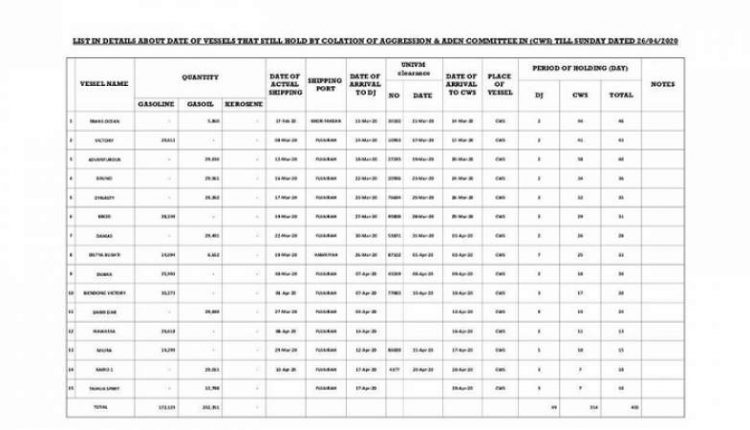 الصورة لكشف تفصيلي بالسفن النفطية المحتجزة والكميات على متنها.