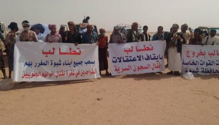 وتتزامن التحركات الإماراتية مع تداعي القبائل على تخوم عتق عقب انتهاء مهلة لقوات هادي في قضية مقتل احد ابناء الدولة وهو ما يعزز المخاوف من احتمال استغلال الإمارات لهذا الزخم لتفجير الوضع وقلب المعادلة في اهم محافظة تسعى ابوظبي للإبقاء عليها من حصتها في إطار سباق تقاسم مكاسب الحرب على اليمن مع السعودية.
