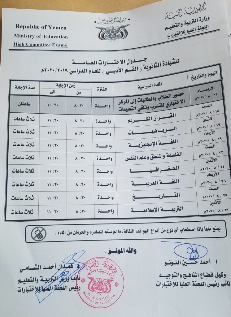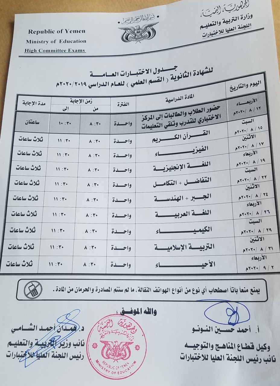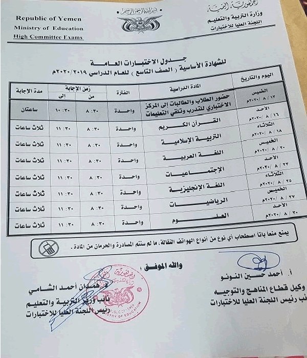 وأكد نائب وزير التربية والتعليم رئيس اللجنة العليا للاختبارات الدكتور همدان الشامي في تصريح لوكالة الأنباء اليمنية (سبأ) أن القرار تم اتخاذه بعد دراسة مستفيضة للواقع المعاش وفقا لمؤشرات الميدان التربوي والإجراءات الاحترازية ضد فيروس كورونا ” كوفيد 19 ” ولما فيه مصلحة الطلاب وسلامتهم ومراعاة كل الظروف الصحية والاقتصادية والاجتماعية والتربوية .