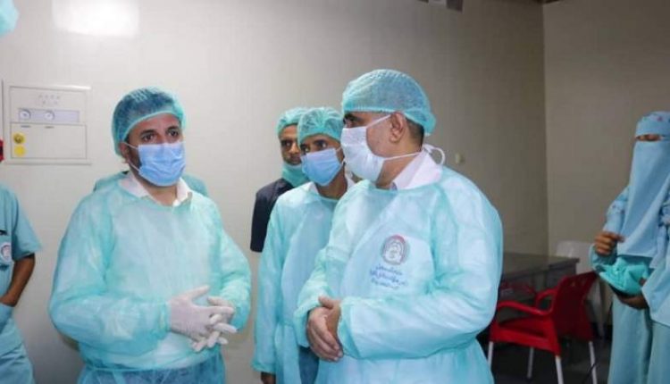 واستمع الدكتور المتوكل خلال الزيارة من رئيس الهيئة الدكتور خالد سهيل إلى شرح حول سير إجراءات العلاج ونسبة التعافي وحالات الإصابة بمرض كورونا، مشيراً إلى تعافي عدد من الحالات وخروجها من المستشفى.