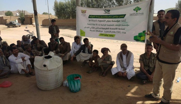 اختتمت بمحافظة صعدة اليوم دورة تدريبية حول تحضير واعداد الأسمدة الطبيعية من مواد خام محلية، نظمتها مؤسسة بنيان التنموية بالتعاون مع مؤسسة الارتقاء للتنمية الزراعية.