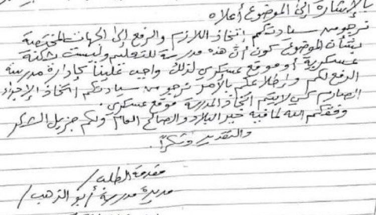 وطالب مكتب التربية في المديرية بسرعة اخلاء المسلحين المدرسة وعدم تحويلها الى ثكنة عسكرية .