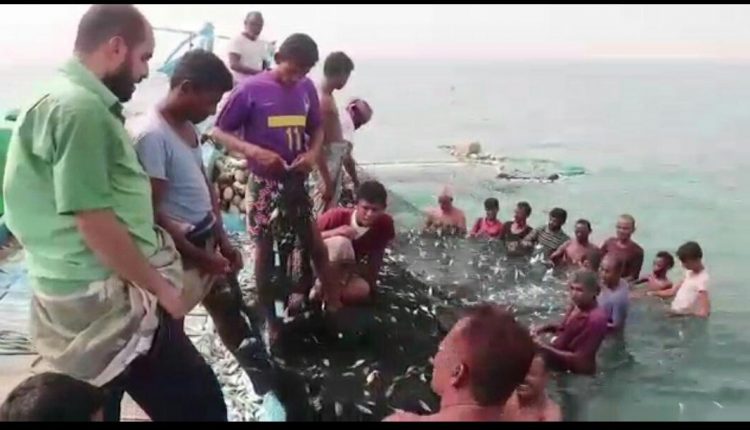 الحديدة: نفوق أسماك صغيرة في ساحل الصليف جراء استخدام شباك ممنوعة