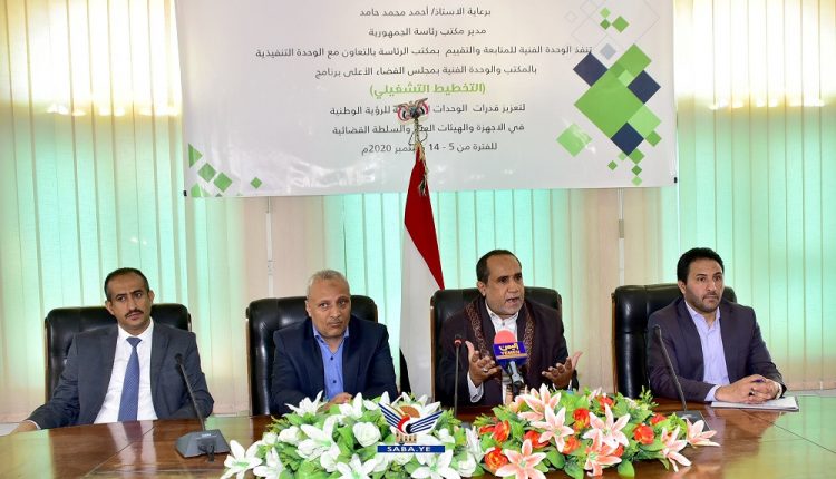 يمانيون – دشن مدير مكتب رئاسة الجمهورية أحمد حامد اليوم، أعمال برنامج التخطيط التشغيلي، لتعزيز قدرات الوحدات التنفيذية للرؤية الوطنية لبناء الدولة في الأجهزة والهيئات العليا والسلطة القضائية.