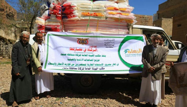 الهيئة العامة للزكاة بصنعاء توزع مساعدات للمتضررين من السيول بمناخة