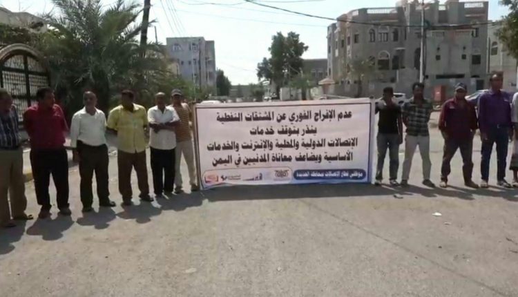 وقفة لموظفي اتصالات وبريد الحديدة للتنديد باستمرار احتجاز السفن النفطية