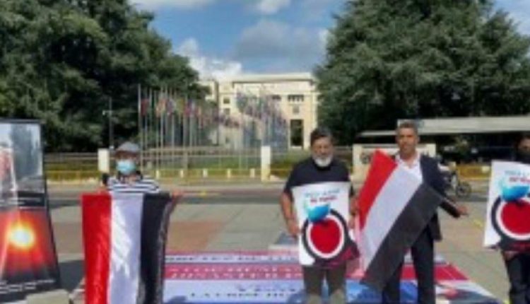 وخلال الفعالية التي اقيمت، أمس الاول أمام الكرسي المكسور قبالة مقر الأمم المتحدة في جنيف على هامش أعمال الدورة 45 لمجلس حقوق الإنسان التي بدأت الاسبوع الماضي وتستمر حتى السادس من أكتوبر القادم، ورفع المشاركون في الوقفة لافتات تستعرض بعضا من جرائم الحرب التي يرتكبها التحالف بقيادة السعودية والإمارات وامريكا ضد الشعب اليمني.
