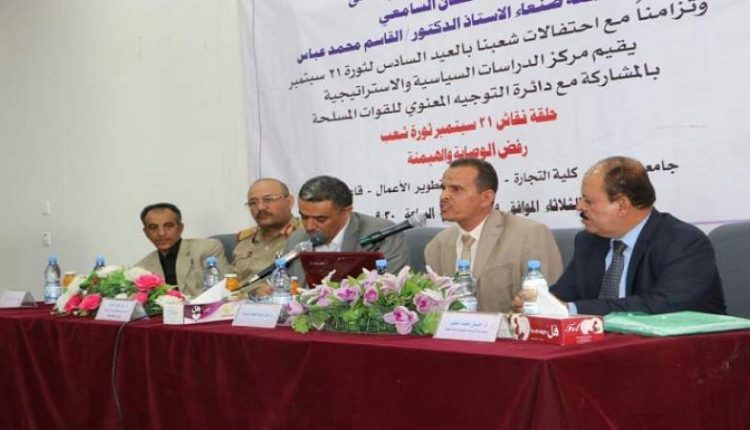 جامعة صنعاء تنظيم حلقة نقاشية بعنوان 21سبتمبر ثورة شعب رفض الوصاية والهيمنة