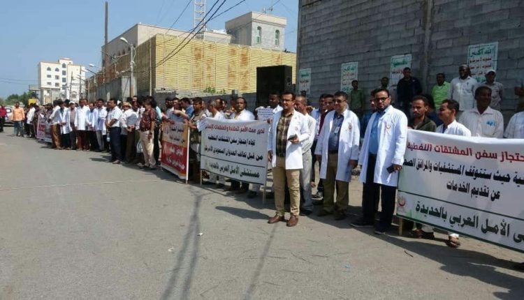 نظمت هيئة مستشفى الثورة العام وصندوق النظافة والتحسين والمؤسسة العامة للكهرباء وشركة النفط اليمنية ومستشفيات الأمل والرشيد والحديدة ومراكز الغسيل الكلوي ومختبرات الصحة المركزية ومكاتب الصحة بمديريات الحوك والحالي والميناء وقفة إحتجاجية حاشدة تنديداً بإستمرار دول تحالف العدوان احتجاز سفن المشتقات ومنع دخولها الى ميناء الحديدة رغم إستكمالها لكافة اجراءات الفحص في جيبوتي وحصولها على تصاريح من الأمم المتحدة ما ضاعف من معاناة ملايين اليمنيين.
