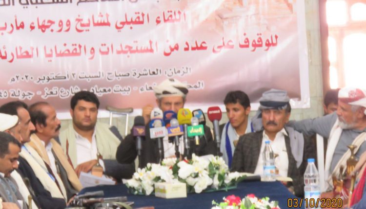 وشدد اللقاء على إقرار مواصلة عمل لجنة الاتصال والتواصل واستيعاب مشائخ ووجهاء مأرب للتواصل بالمترددين والمغرر بهم لتبديد مخاوفهم والعودة إلى صف الوطن.