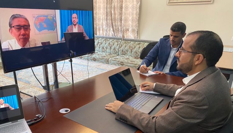 التقى رئيس الوفد الوطني محمد عبدالسلام اليوم عبر تقنية الفيديو سفير الاتحاد الأوروبي لدى اليمن هانس جروندبرج.
