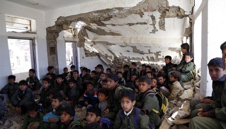 الدراسة تحت انقاض المدارس المدمرة في اليمن