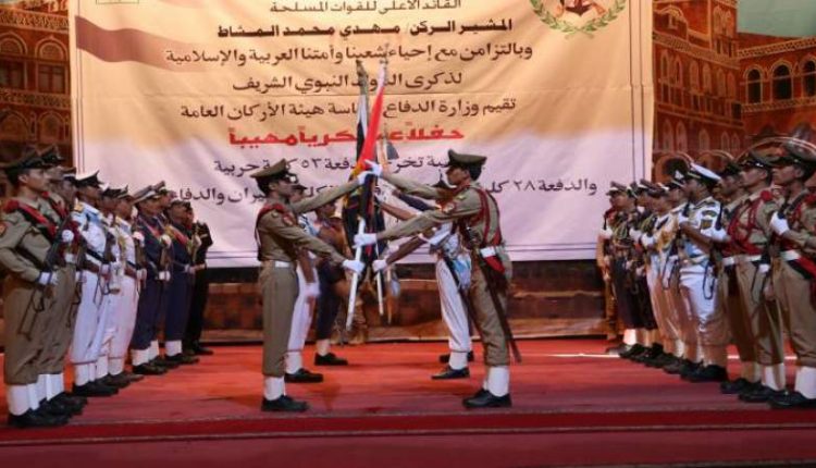 يمانيون – أٌقيم بصنعاء، اليوم الخميس، احتفال عسكري بتخرج الدفعة 53 من الكلية الحربية والدفعة 28 من الكلية البحرية والدفعة 35 من كلية الطيران والدفاع الجوي بالتزامن مع إحياء ذكرى المولد النبوي.