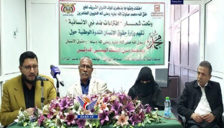 عقدت اليوم بصنعاء ندوة بعنوان “رسول الله وحقوق الإنسان” نظمتها وزارة حقوق الإنسان احتفاء بذكرى المولد النبوي الشريف.