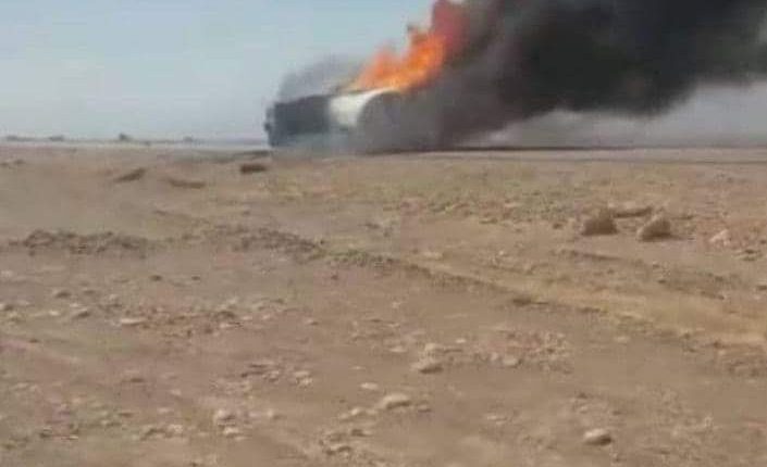طيران العدوان يستهدف قاطرة غاز بمأرب
