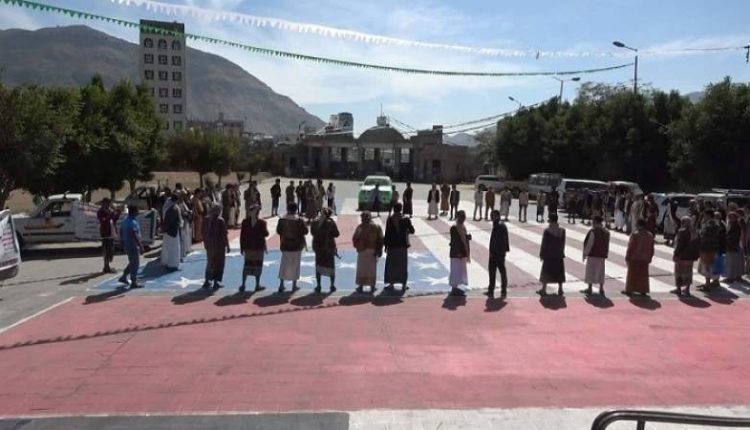 سير أبناء عزلة الأسلوم بمديرية حزم العدين محافظة إب، اليوم الثلاثاء، قافلة غذائية لأسر الشهداء الأشد احتياجاً بالمحافظة.