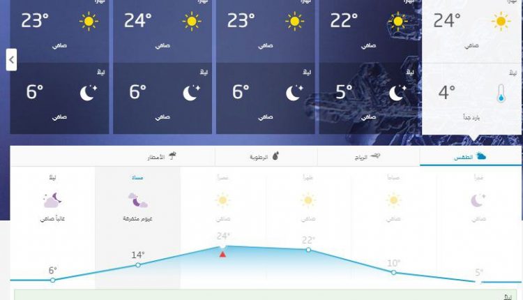 وحسب المركز الوطني للأرصاد الجوية والطقس فإن ذروة تأثير شدة الموجة الباردة بدأت السبت وستسمر على عدة محافظات لمدة 4 أيام ، وتوقع المركز الوطني للأرصاد ، تأثر المحافظات الجبلية وأجزاء من الصحارى والهضاب الداخلية بالكتلة الهوائية الباردة ، وحذر المركز في نشرته التنبيهية من طقس بارد وجاف مع احتمال تكون صقيع على أجزاء من المحافظات الجبلية.