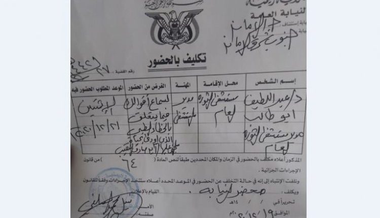 بدات نيابة جنوب شرق العاصمة صنعاء , التحقيق في خطأ طبي أودى بحياة شابة في هيئة مستشفى الثورة العام بالعاصمة .