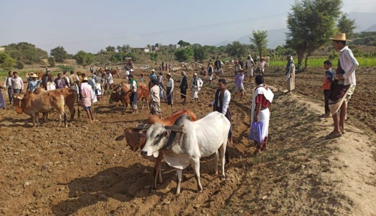 إلى ذلك نفذ ابناء عزلة المخلاف في مديرية قفل شمر مبادرة مجتمعية بالتنسيق مع بيت المبادرات المجتمعية وبرعاية جمعية قفل شمر الزراعية لمنتجي الحبوب، وتحت اشراف السلطة المحلية بالمديرية تمثلت في تشجيع عدد من المزارعين للقيام بتجميع اعداد كبيرة من الثيران للعمل بالحراثة التقليدية بالمحراث القديم والقيام بأستصلاح الأراضي الزراعية التي تعرضت للأهمال خلال السنوات السابقه.