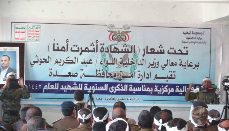 نظمت إدارة أمن محافظة صعدة فعالية مركزية بمناسبة الذكرى السنوية للشهيد تحت شعار “الشهادة أثمرت أمناً”