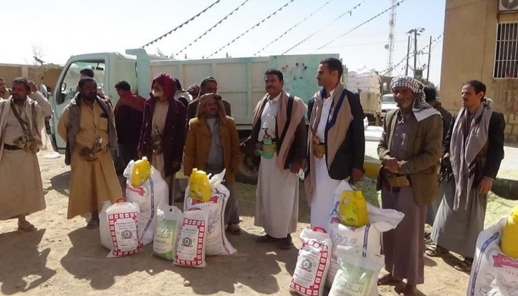 السلطة المحلية بالجوف توزع ألف و727 سلة غذائية لأسر الشهداء