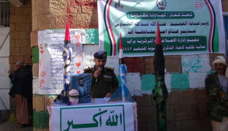 وفي الفعالية أكد مدير عام الإصلاحية المركزية بمحافظة إب العقيد رضوان سنان أن تضحيات الشهداء أثمرت نصراً وعزة في معركة الاستقلال التي يخوضها الشعب اليمني لتحرير الوطن من دنس الغزاة والمحتلين.