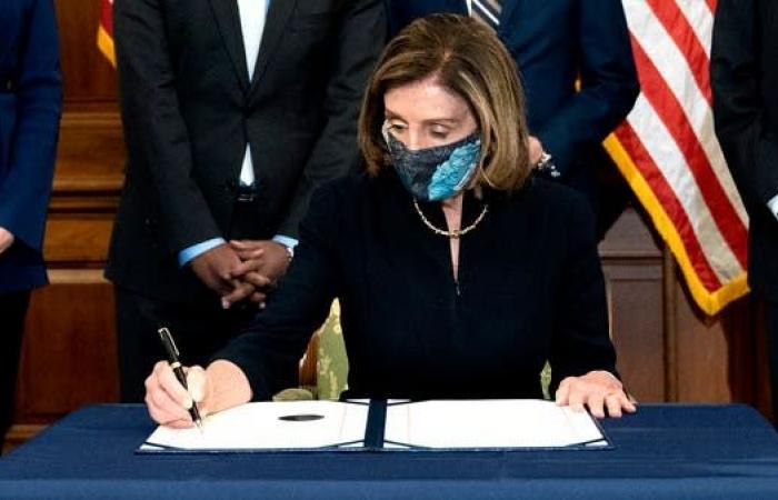 وأكدت بيلوسي في هذا السياق أنّ “المعنيين يقومون بالتحضير لمحاكمة الرئيس المنتهية ولايته دونالد ترامب التي ستنتقل إلى مجلس الشيوخ، ونعمل على نقل المحاكمة إلى مجلس الشيوخ وسنعلمكم بموعدها”.