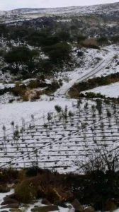 واظهرت الصور المدرجات الزراعية وهي تكتسي بياض الثلج لتضفي مناظر فريدة ورائعة لأول مرة في اليمن بشكل عام.
