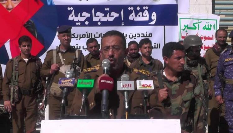 نظمت إدارة أمن محافظة صنعاء اليوم الأحد، وقفة إحتجاجية رفضا لقرار وزارة الخارجية الأمريكية بتصنيف أنصار الله منظمة إرهابية.