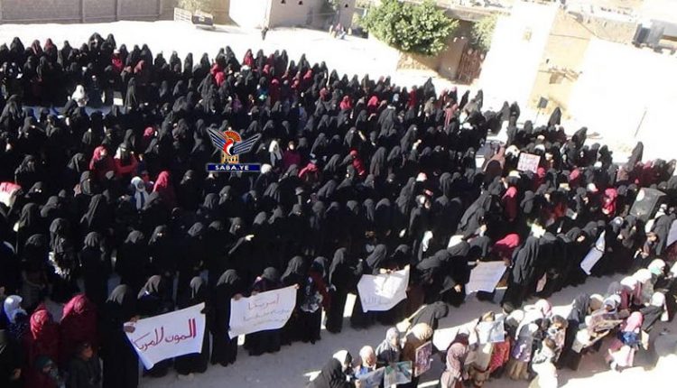 واستنكرت حرائر المديرية استمرار الصمت الدولي إزاء ما يتعرض له الشعب اليمني من جرائم وحرب وتجويع ممنهج.